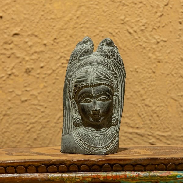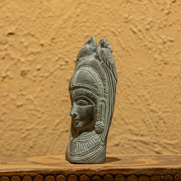 This Devi Pallava Carving (4″) is an exquisite handcrafted sculpture made from premium green stone, inspired by the classical artistry of the ancient Pallava dynasty. The finely detailed carving reflects divine grace, strength, and serenity, showcasing traditional South Indian stone craftsmanship. Ideal for pooja rooms, altars, meditation corners, or heritage décor displays, its compact size makes it perfect for intimate sacred spaces. The natural stone texture and timeless design give this sculpture both spiritual significance and cultural elegance.
